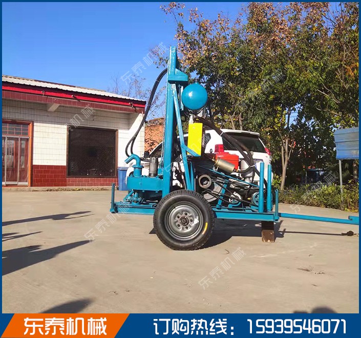 河南省漯河市临颍县东泰机械制造有限公司是一家生产打井机的厂家,生产的打井机有电机带的和柴油机带的两种,可以改装在履带上,农用车上或是做成自走的用轮胎拉着走。