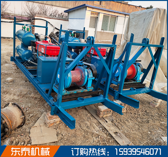 河南省临颍县东泰机械主要生产打井打桩机、空压洗井机、管道开沟机和栽树挖坑机,封沟机等几十款机器,生产的空压洗井机通过空压机产气输送到井下把井内的水和泥搅浑,通过洗井杆冲上来。